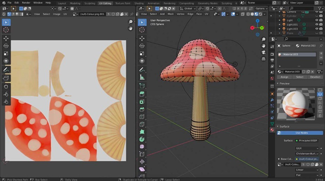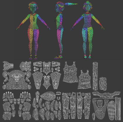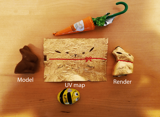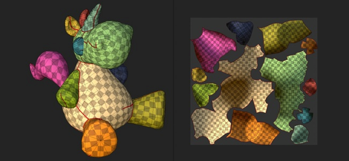 This process can be divided into four stages. Defining the seams, unwrapping into 2D, creating a UV layout and finally texture application