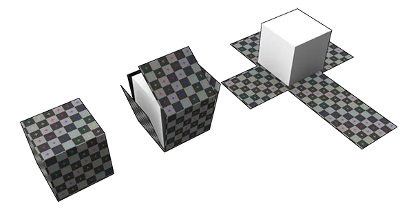 It is the process of flattening a 3D model into a 2D “UV map” to allow for the application of 2D image textures without stretching or distortion. Usually, it is done by cutting the 3D mesh and laying the resulting 2D shapes flat in a layout. There are different methods of unwrapping. Different methods are good for different shapes.